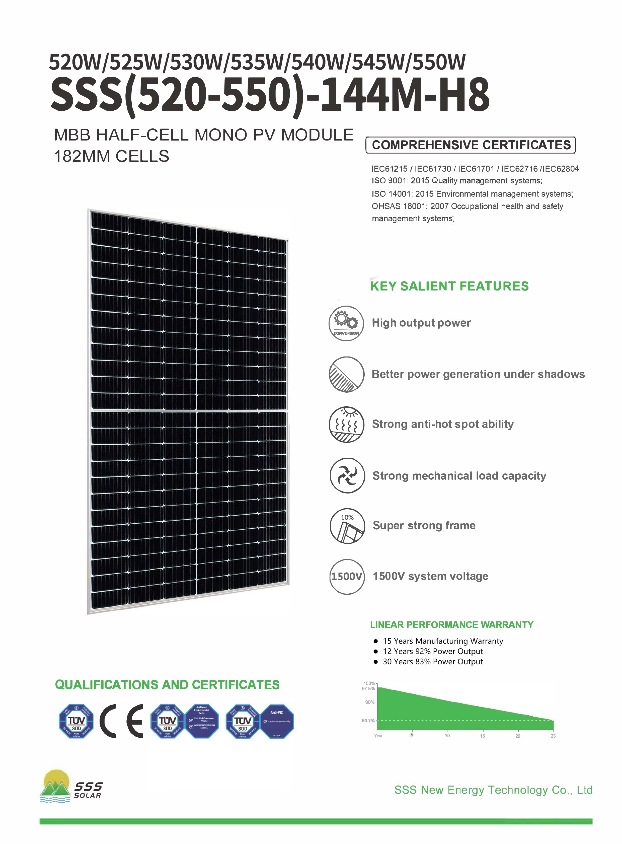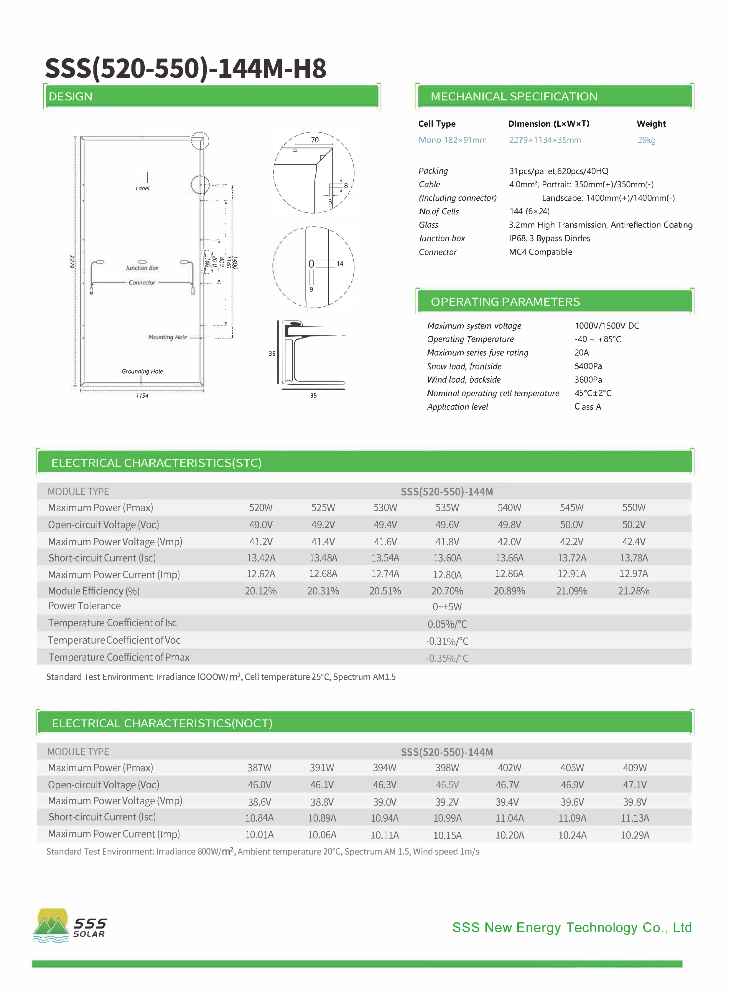 | Maximum Power (Pmax) | 520W | 525W | 530W | 535W | 540W | 545W | 550W |